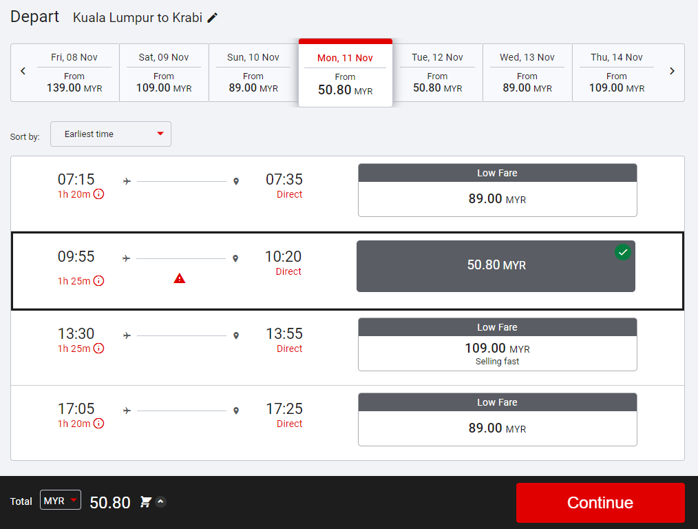 飞往 Krabi 也同样是 RM50.08 哦!
