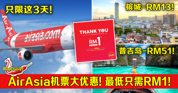 即日起亚航(AirAsia)推出3天大优惠!无论是国内或国际,机票都超便宜,最低才RM13.06!
