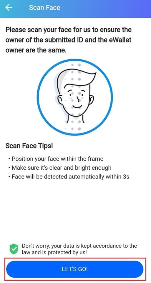 步骤5:需扫一扫你的自拍像,后点击“Let’s Go”