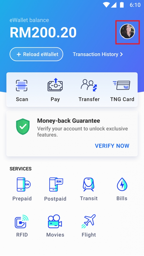 步骤1:下载Touch ‘n Go eWallet 后打开页面后点击个人户口(红色方形框)