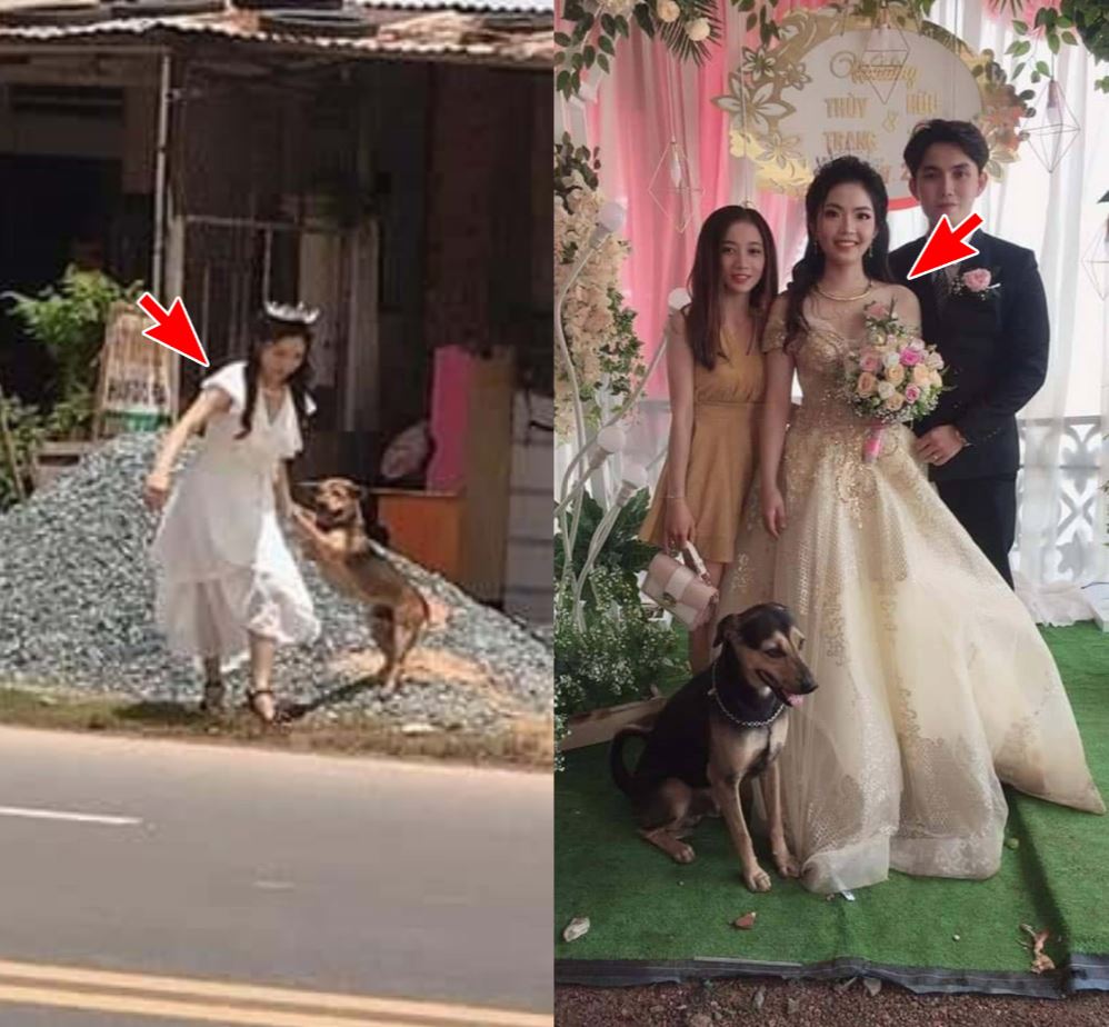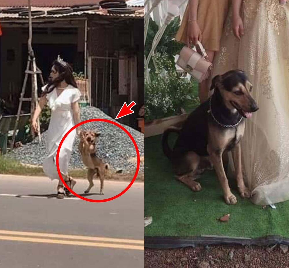 近日,有一组来自越南的照片在网上疯传,照片里,一名穿着礼服的新娘在马路上牵着一只狗狗。