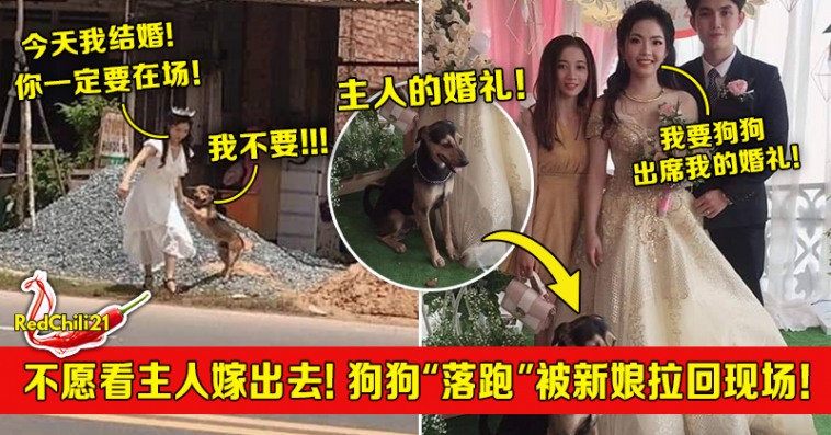 相信那只狗狗是在婚礼当天“落跑”了,打扮得漂漂亮亮的新娘,为了要把狗狗带到婚礼现场,还四处去寻找它。