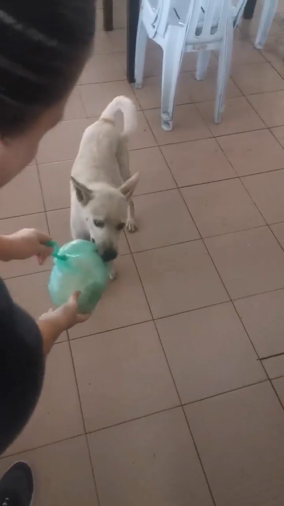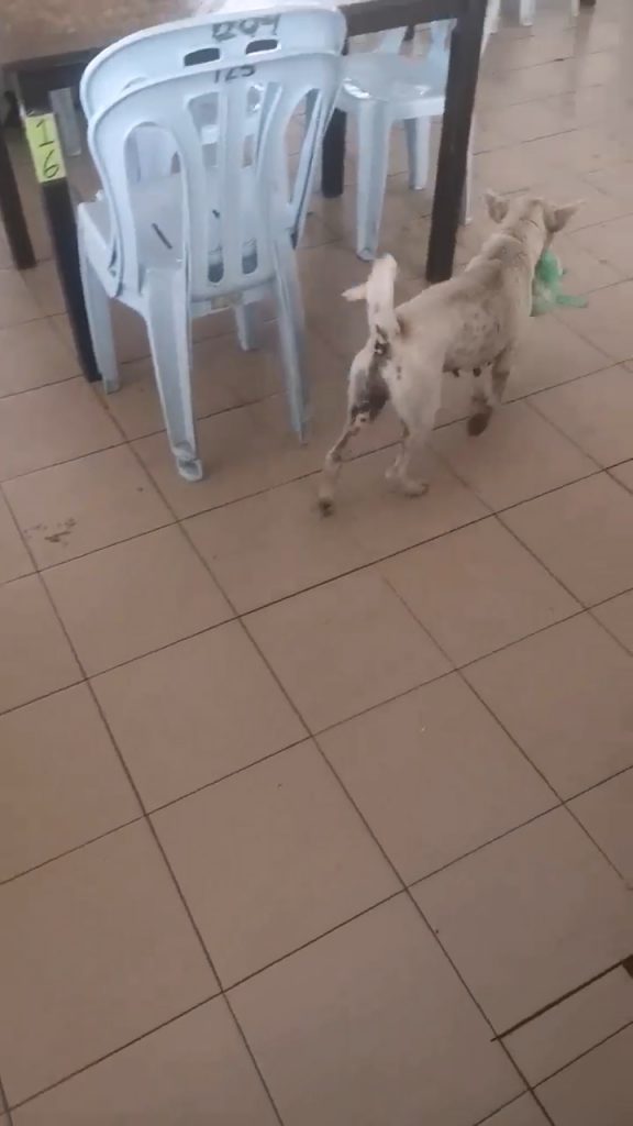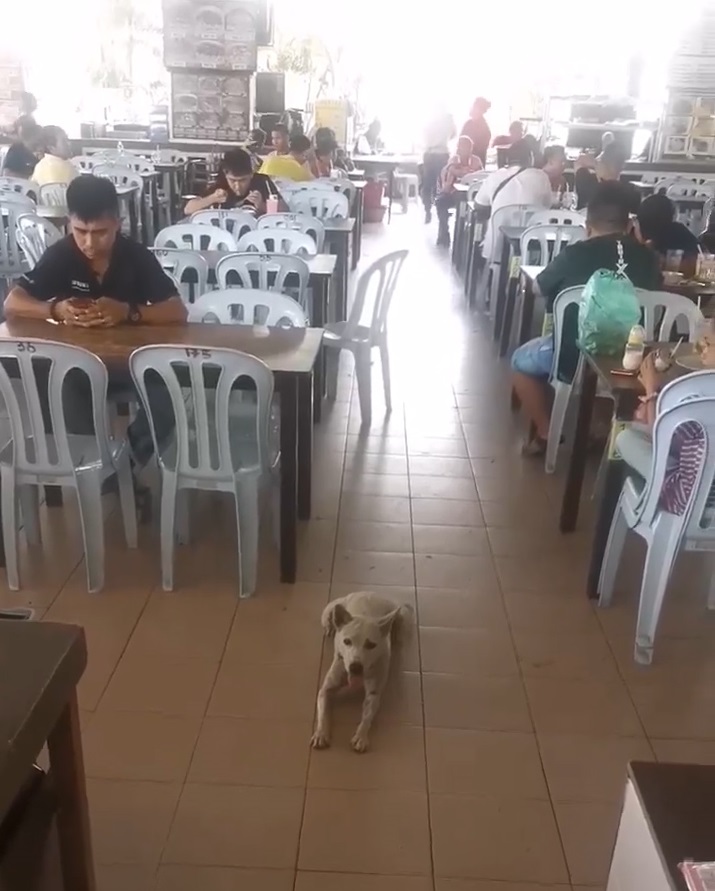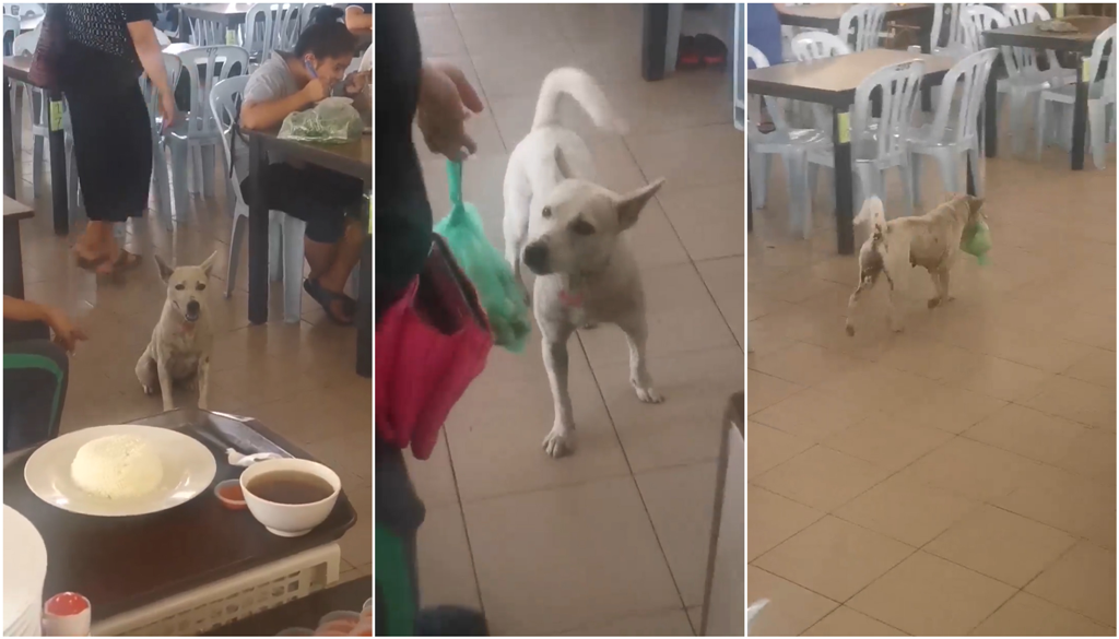 ▼小白似乎很懂人性,在等待打包鸡饭的时候会静静坐着等待!