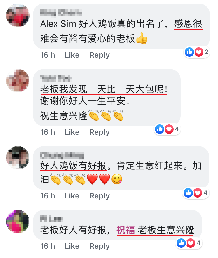 ▼老板的善行真的是网友所说的名副其实的“好人鸡饭”!