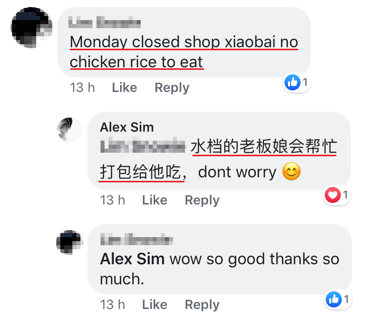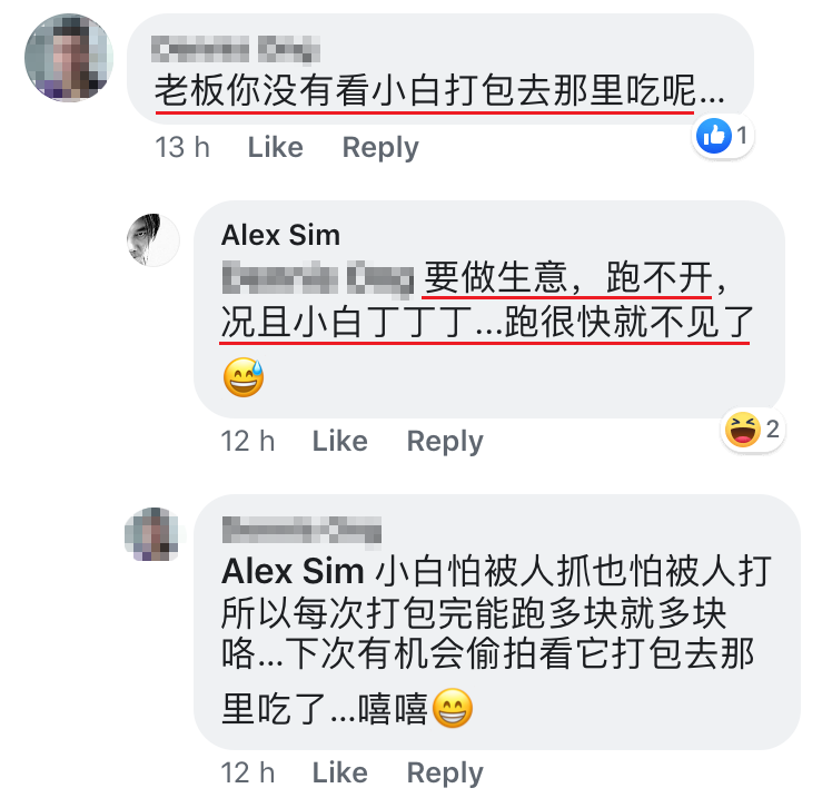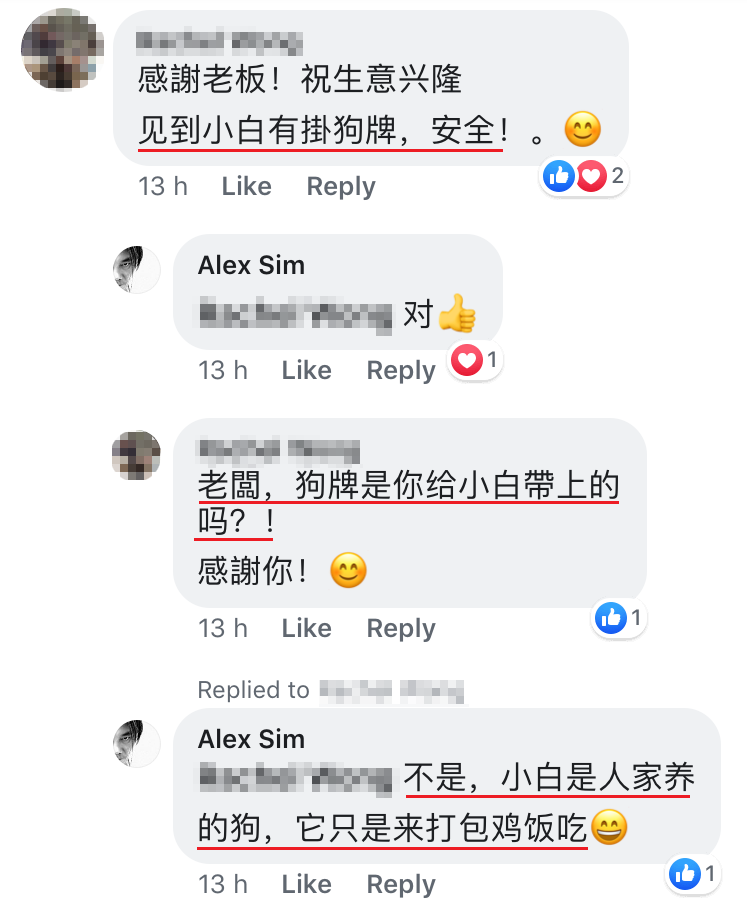 ▼网友们没完没了,接着还询问鸡饭老板Alex Sim小狗打包去哪里吃!