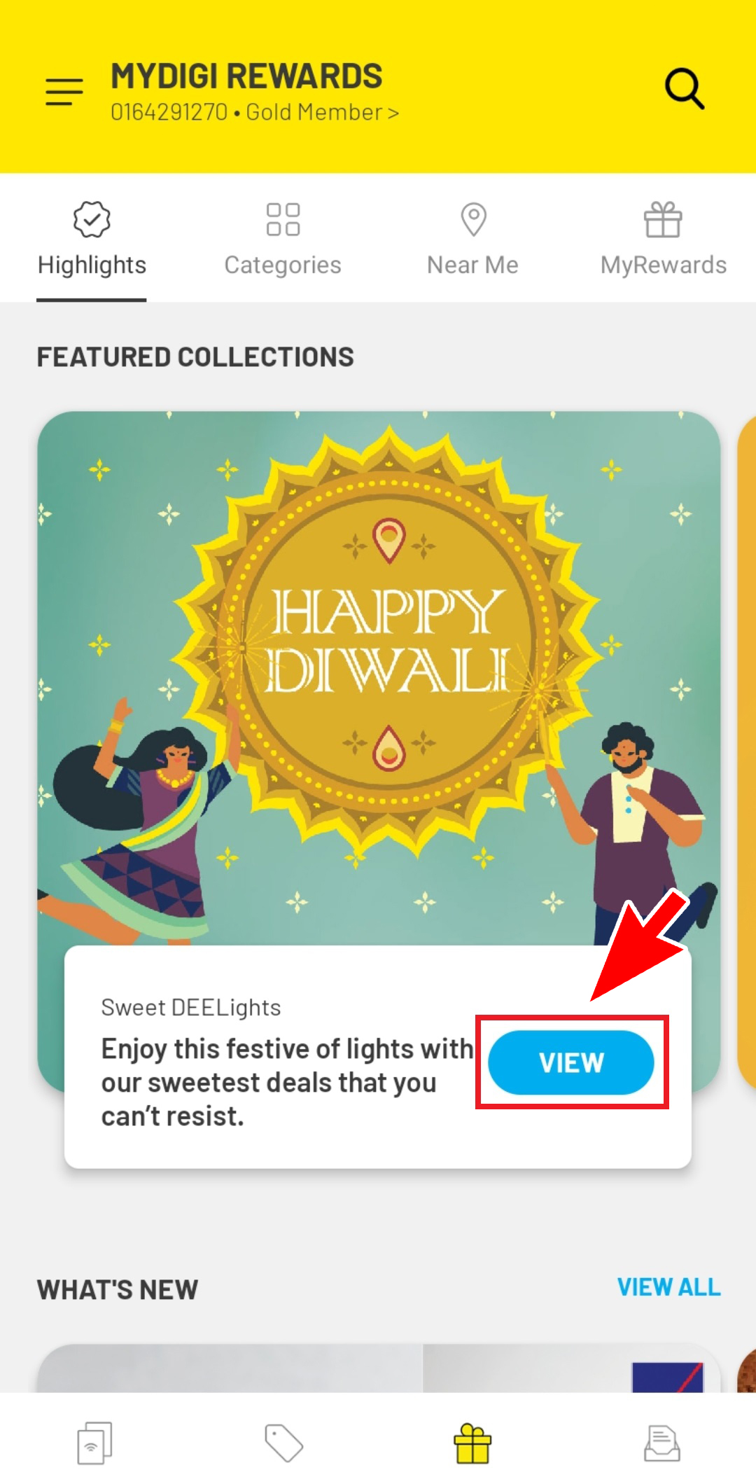 ▼ Step 2:在 “FEATURED COLLECTIONS” 选择 “HAPPY DIWALI” 并点击 “VIEW”。