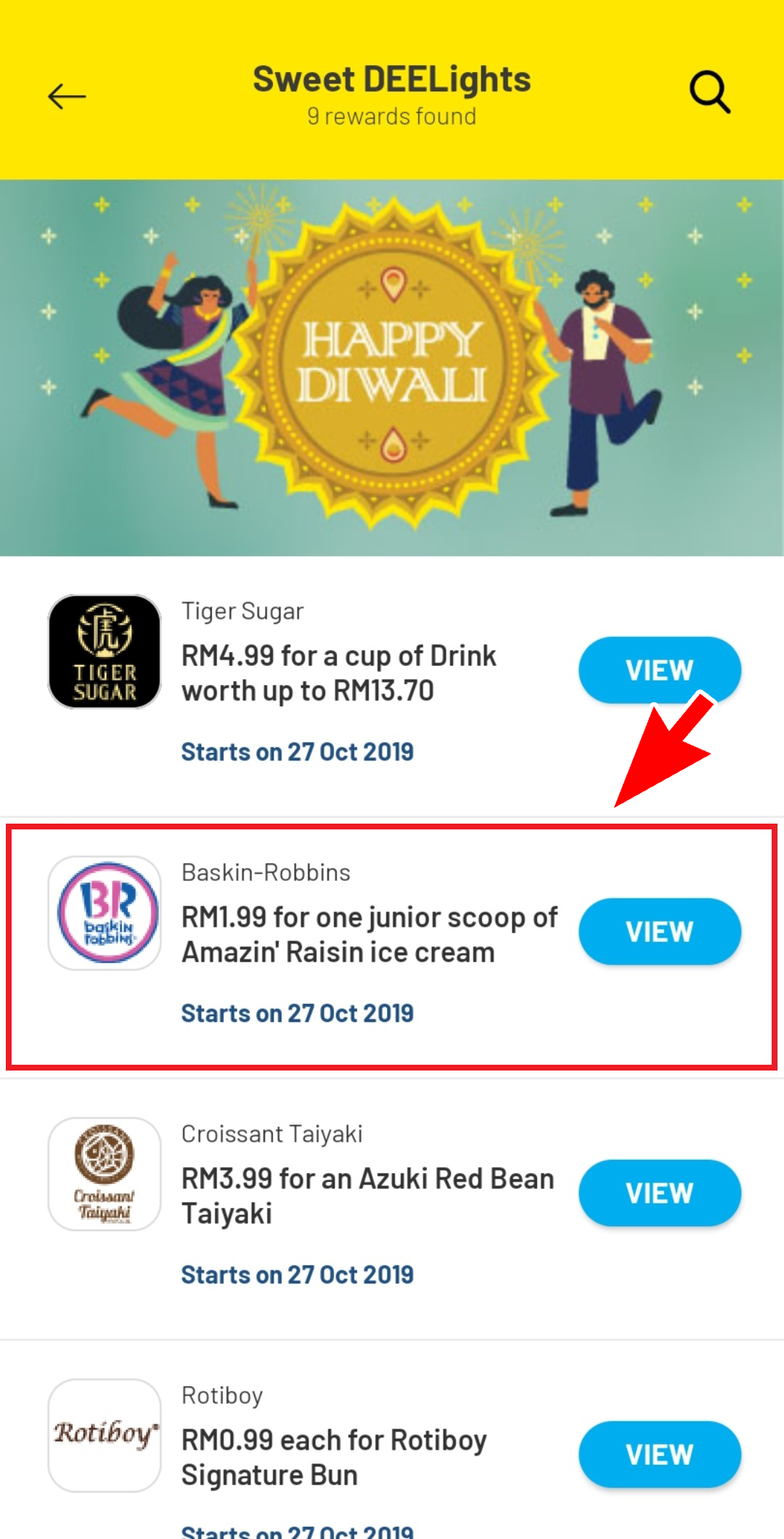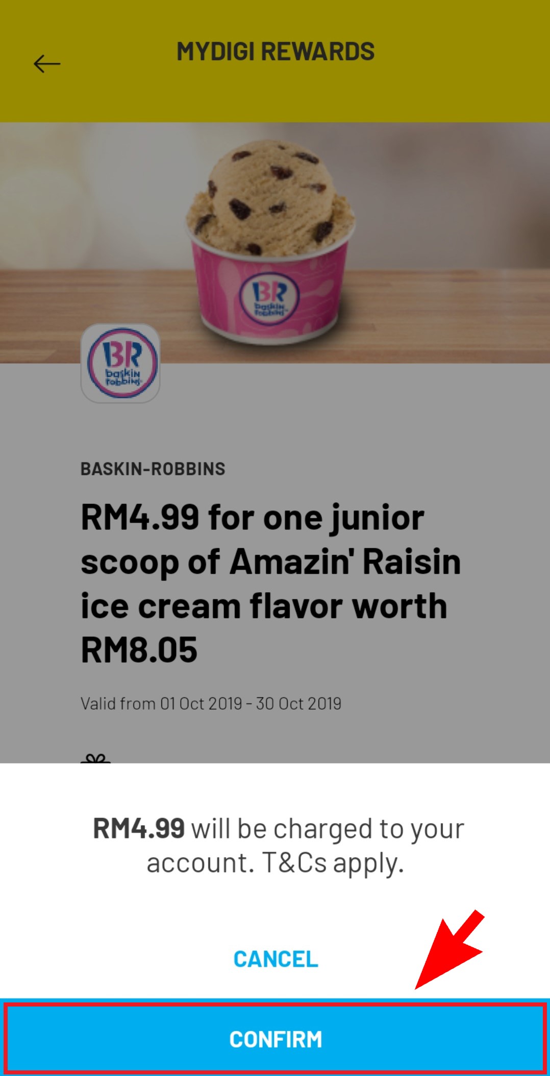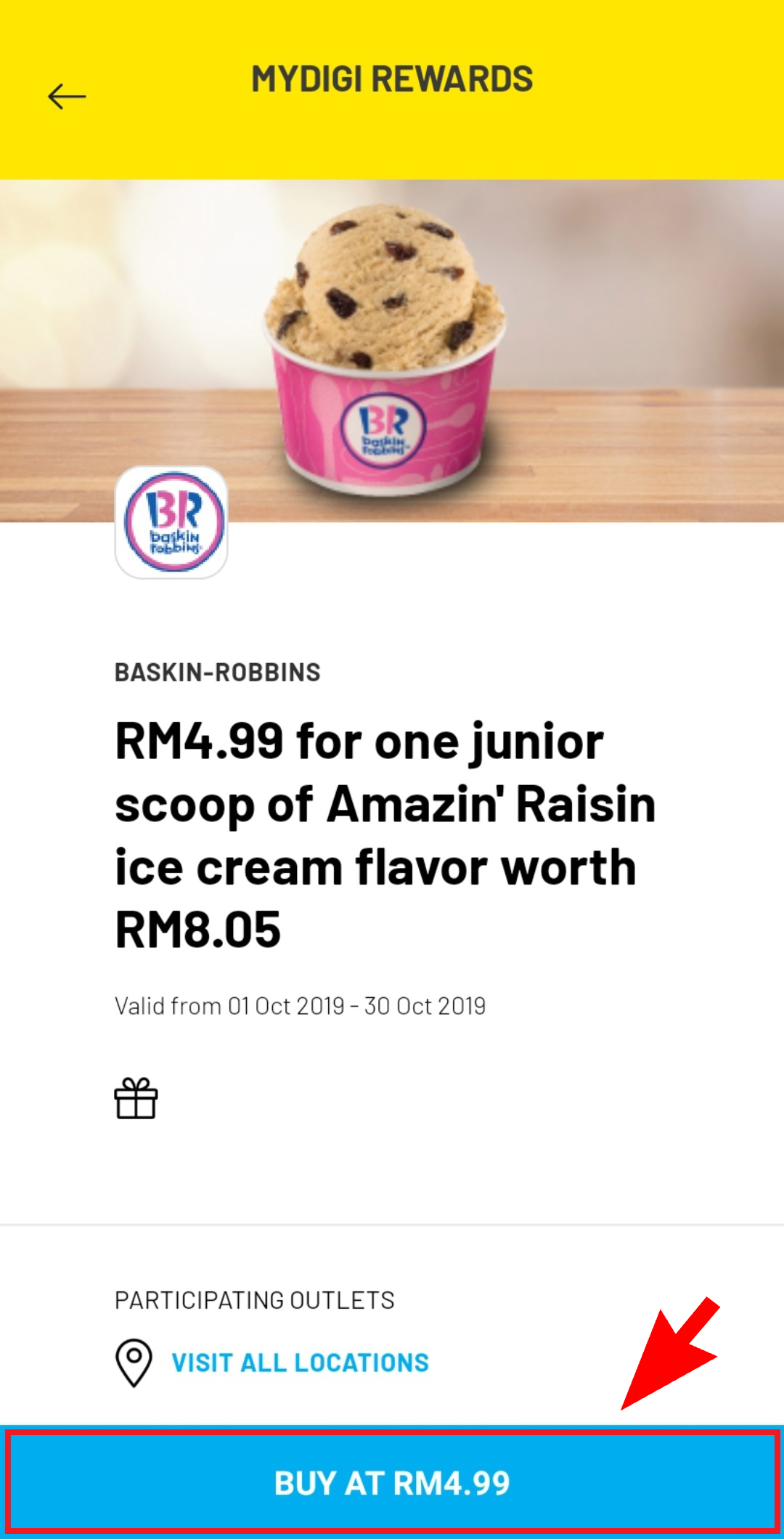 ▼ Step 3:选择你所要用的礼券(例如:Baskin-Robbins),在店内点餐时才点击。