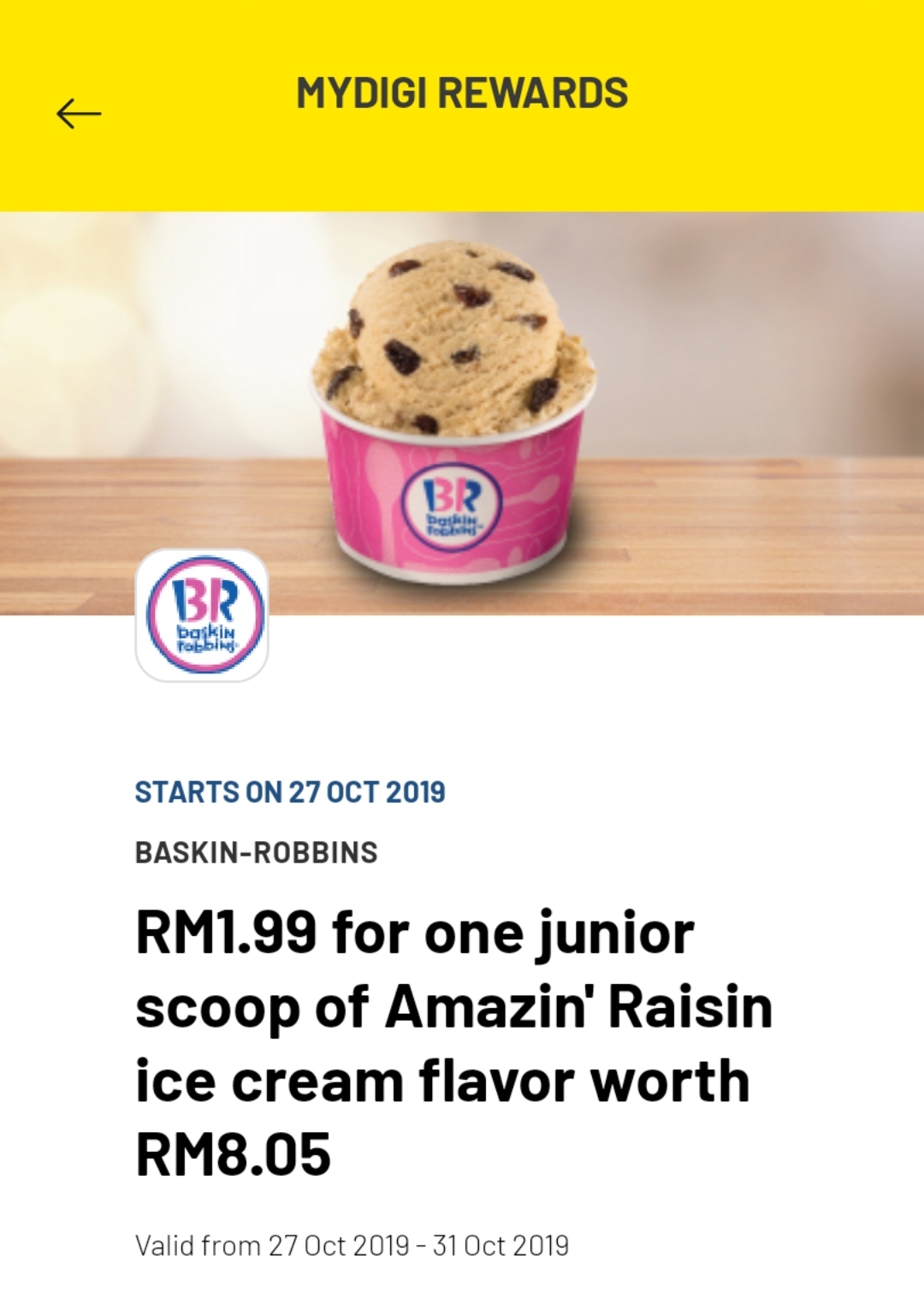 ▼ ⑥ Baskin-Robbins 一份 Junior Scoop 的 Amazin’ Raisin 雪糕,现在只需 RM1.99(原价 RM8.05)!