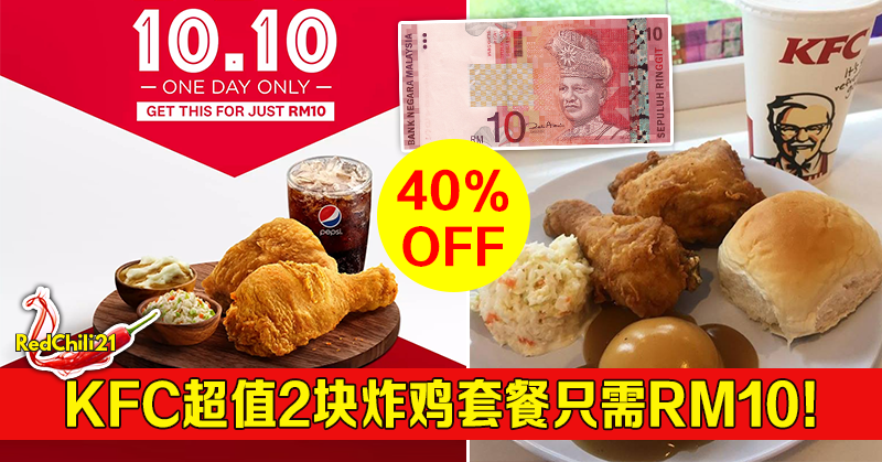 促销活动:KFC 10.10超值2块炸鸡套餐只需RM10!