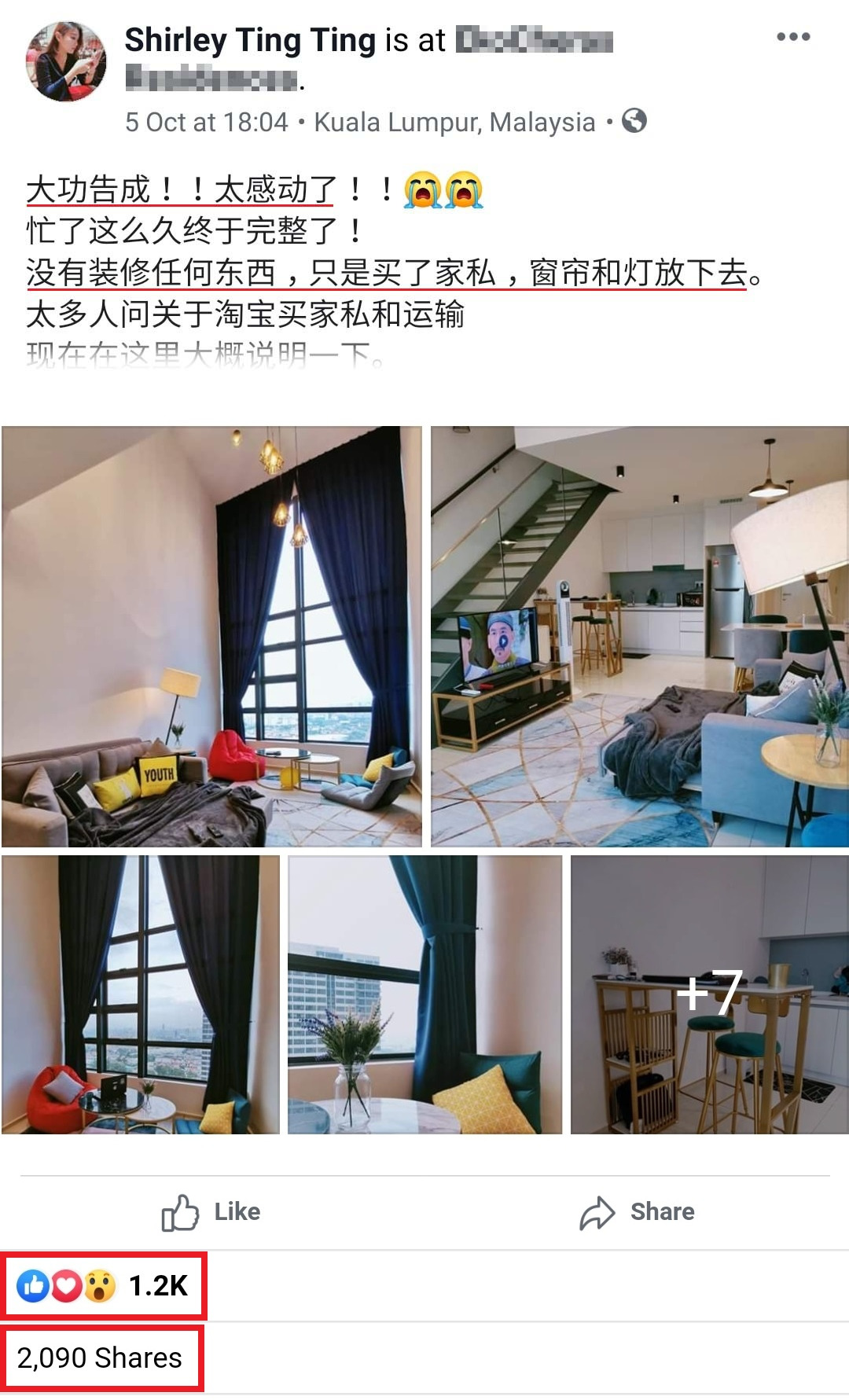 然而近日,一名大马网友 Shirley 在面子书PO文分享自己的心得,家具全是在淘宝买的!