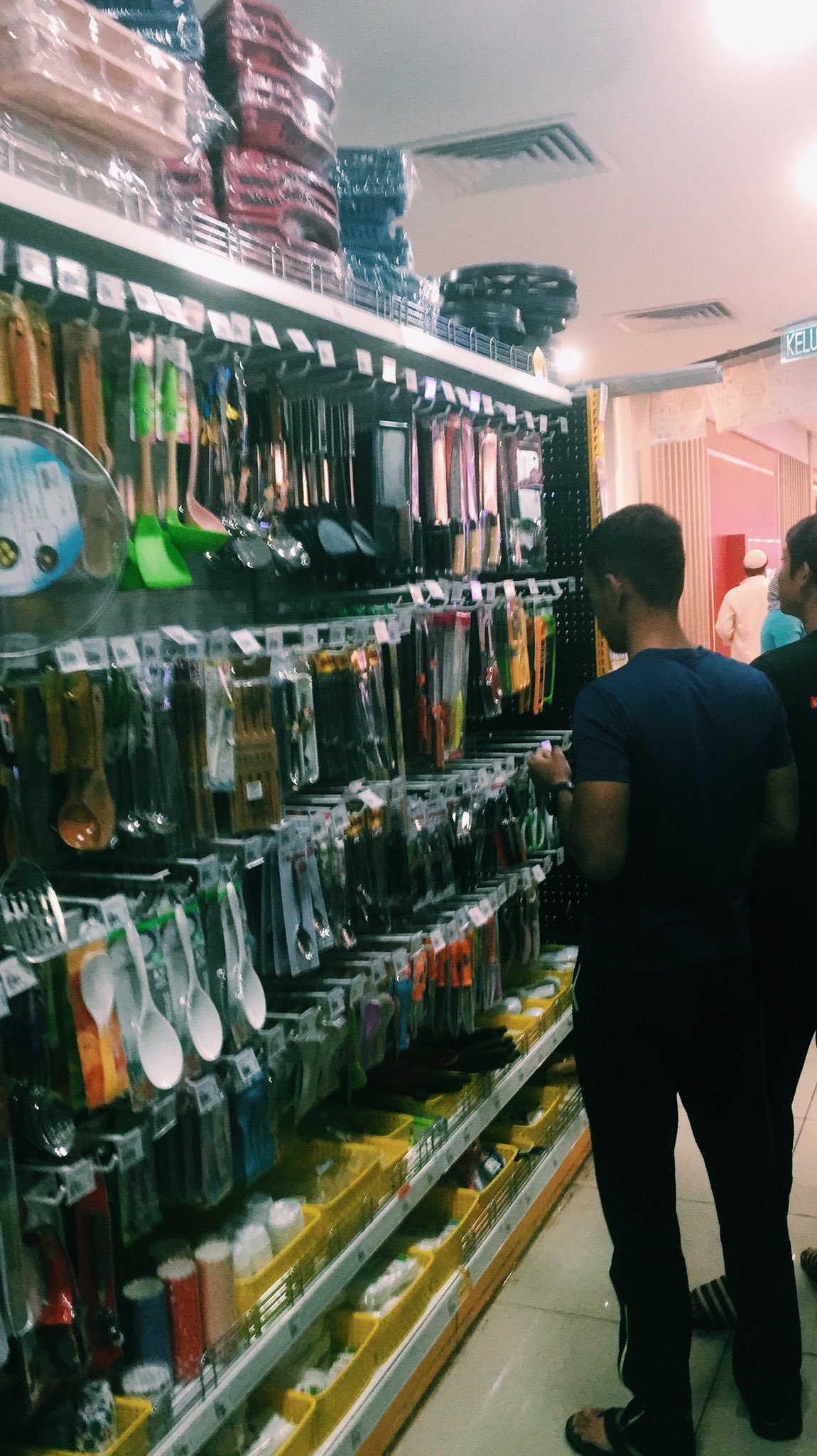 ▼ 首先,该男子先到商店购买折玫瑰花的材料。