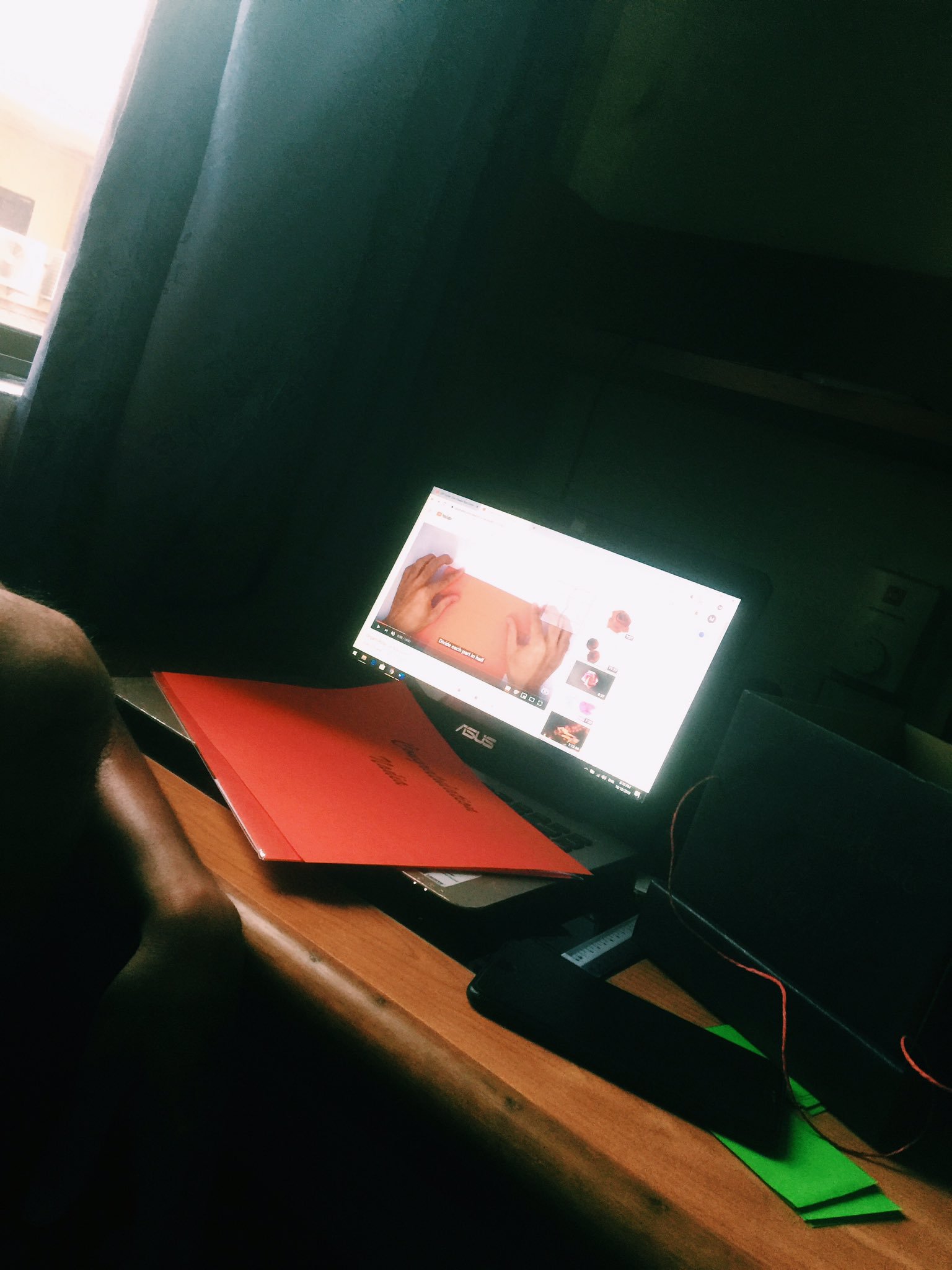 ▼ 材料都准备好以后,他就在宿舍里,开着 Youtube 的教学视频,一边看一边学着折!