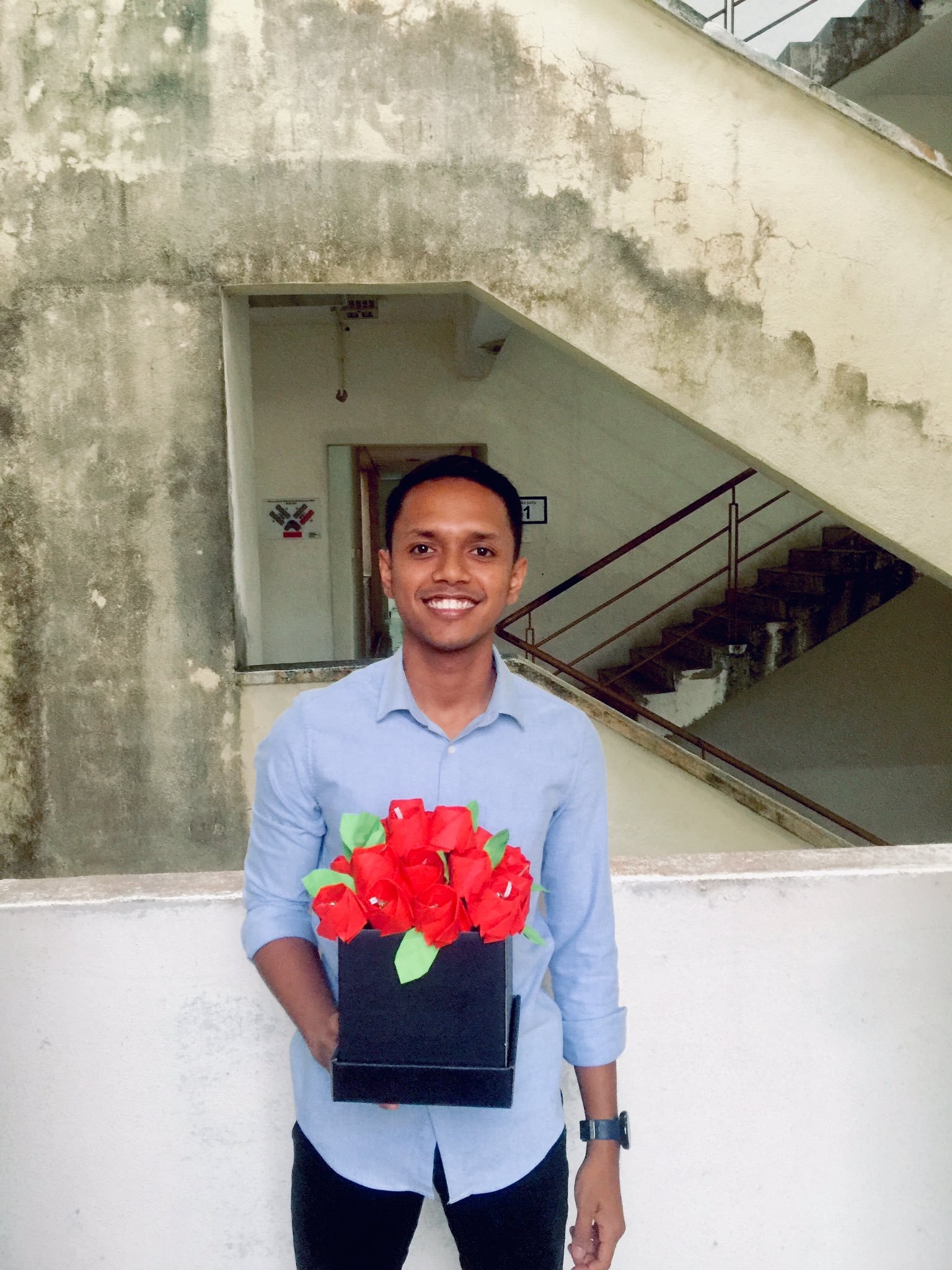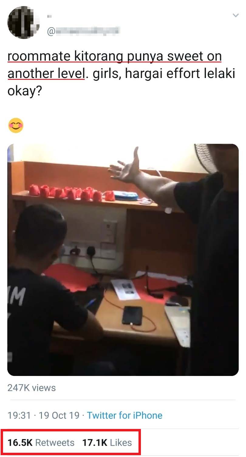 据 mStar 报道,拍摄该视频的当天晚上,两位室友离开宿舍,出门去吃晚餐,而该男子并没有参与。他们以为他课业忙碌,后来才发现他忙着折玫瑰花!