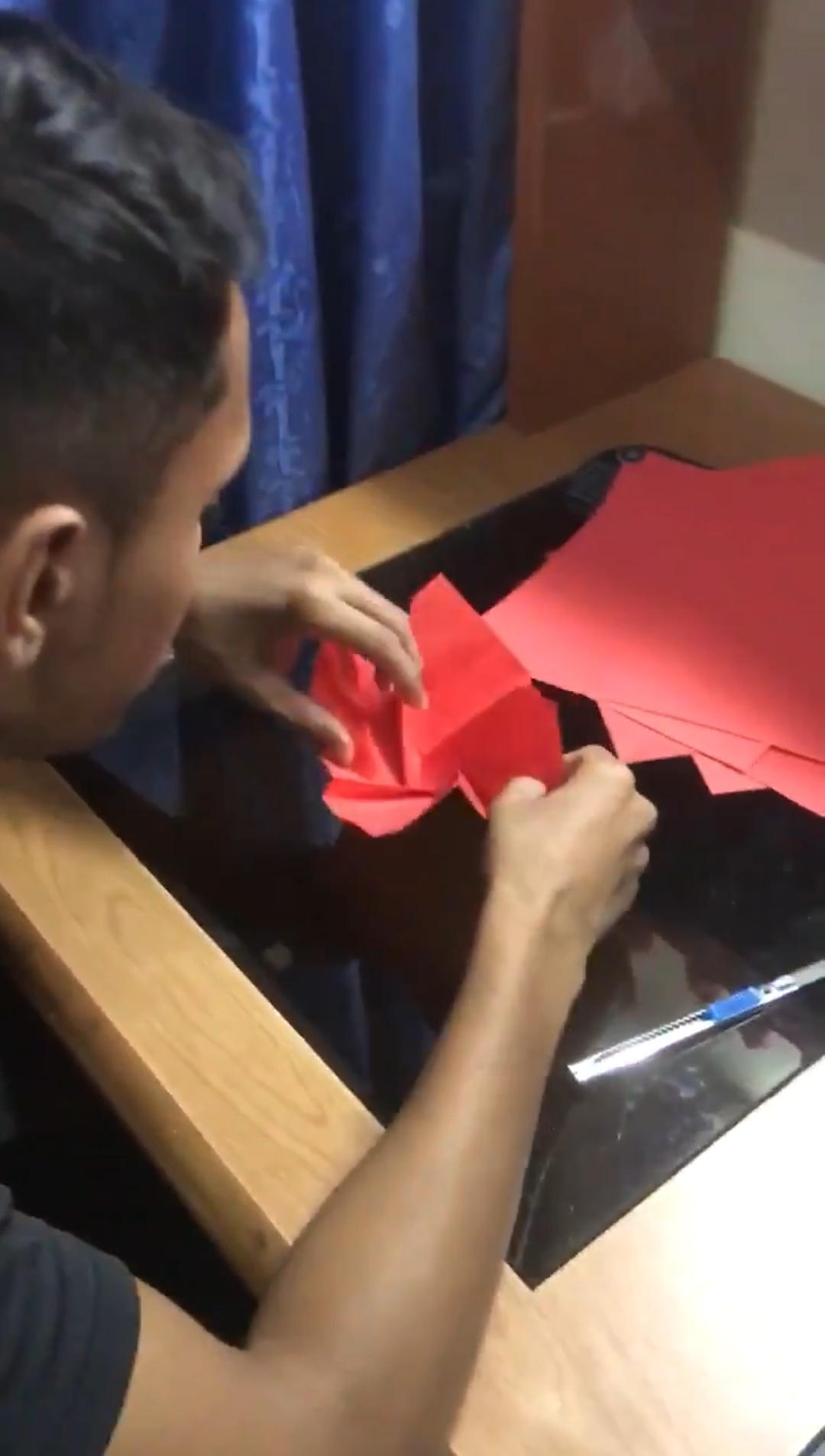 ▼ 桌子上全是他用心血折出来的玫瑰花!