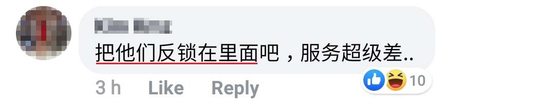 我说:「这间可是给残疾人士或者行动不方便的老人家用的厕所,真不敢想象如果万一有人出了事,在里面门又开不了,你们又没有备用钥匙在身,这个就是出人命的大事了。」