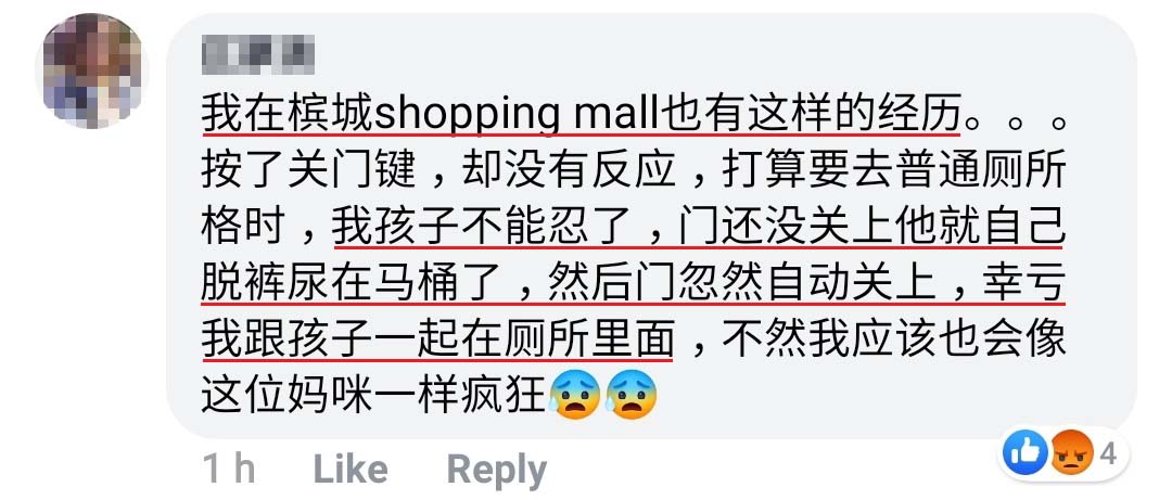然而,昨天一名大马妈咪在面子书分享自己的遭遇,宝宝被反锁在商场里的无障碍卫生间里!