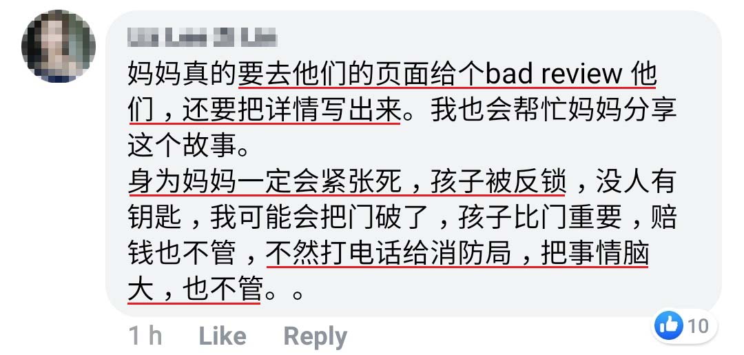 我希望他们可以检讨,他们这种完全不重视小孩被反锁在厕所內,以至于他们可以这样漫不经心,甚至可以用散漫来处理这种事的态度!