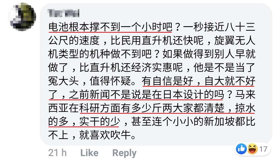 部长回应说:如今受到世界顶级会计师事务所普华永道(PwC)的认可,马来西亚人是世界第3飞行车公司的人才。