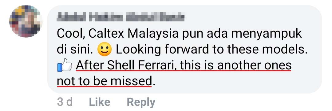 ▼ 而且根据大马网友们的透露,只要在 Caltex 油站消费满 RM40,就能够以 RM16.90 的价格来购买到该系列的模型车啦~