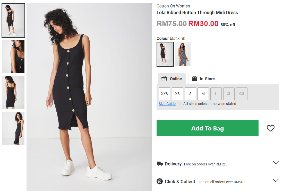 ▼ Lola Ribbed Button Through Midi Dress 折扣60%后只需RM30