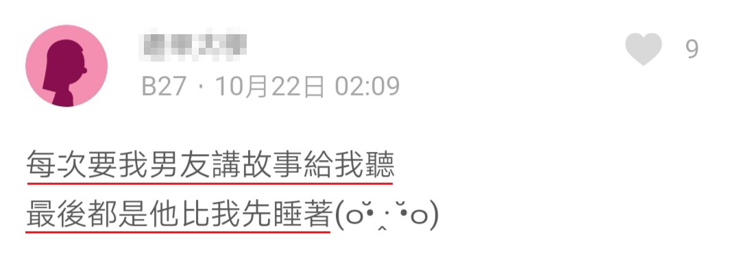▼ 不过这网友的男友与其他人相反,讲故事给女友听反而自己先睡了!