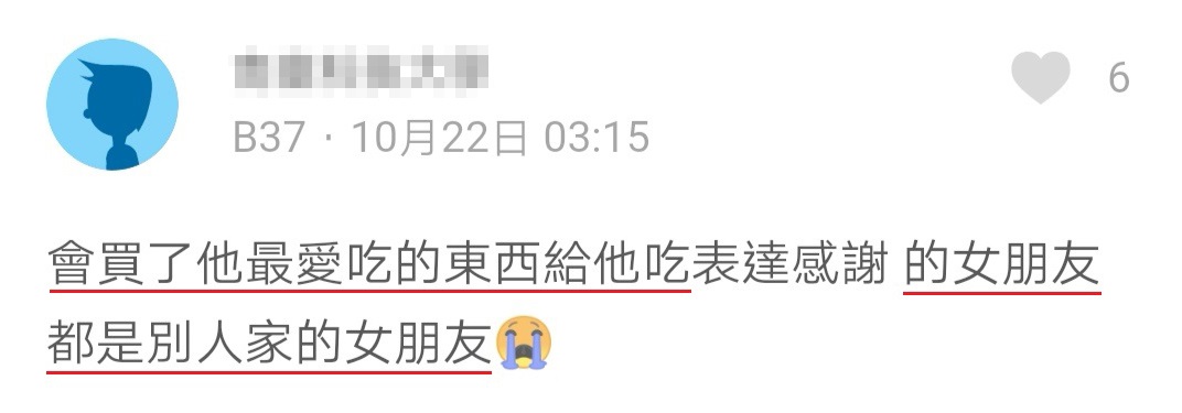 ▼ 有男网友表示:「会买男友爱吃的食物,也是别人的女朋友!」
