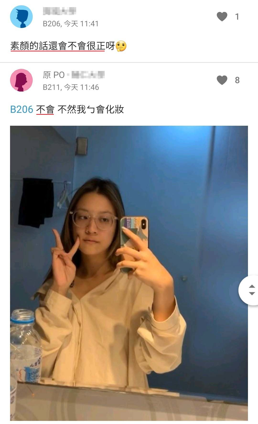 ▼ 网友对于原PO素颜有些好奇,没想到原PO就大方地Show出素颜照了!也很漂亮呀!