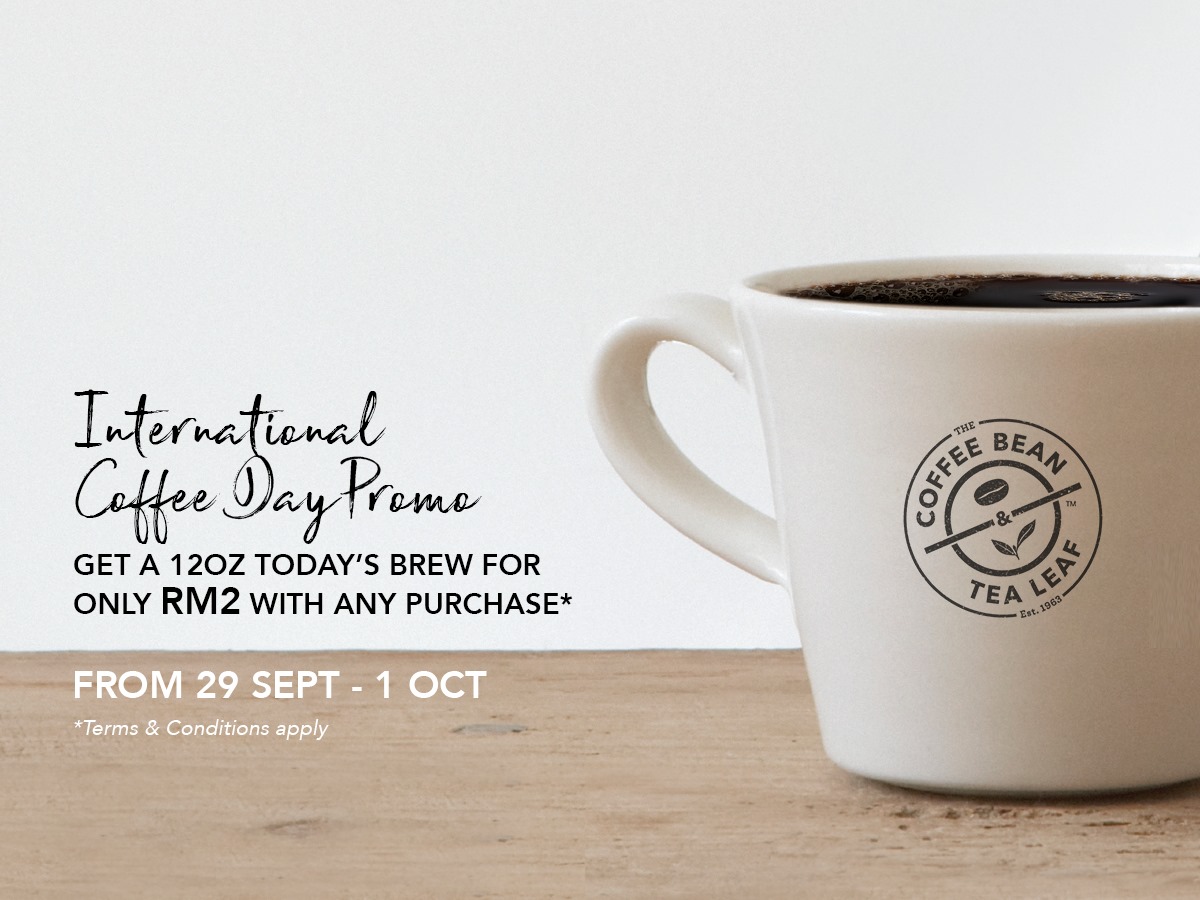 促销活动:The Coffee Bean & Tea Leaf 国际咖啡日优惠 – 咖啡只需 RM2 !