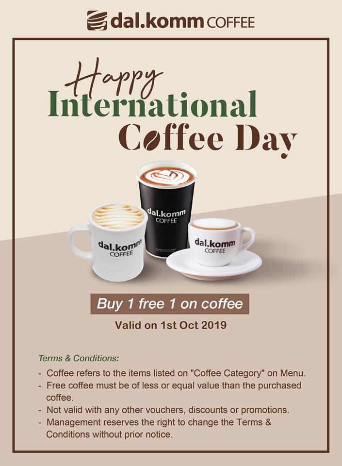 促销活动:Dal.Komm Coffee 国际咖啡日优惠 – 咖啡买一送一!