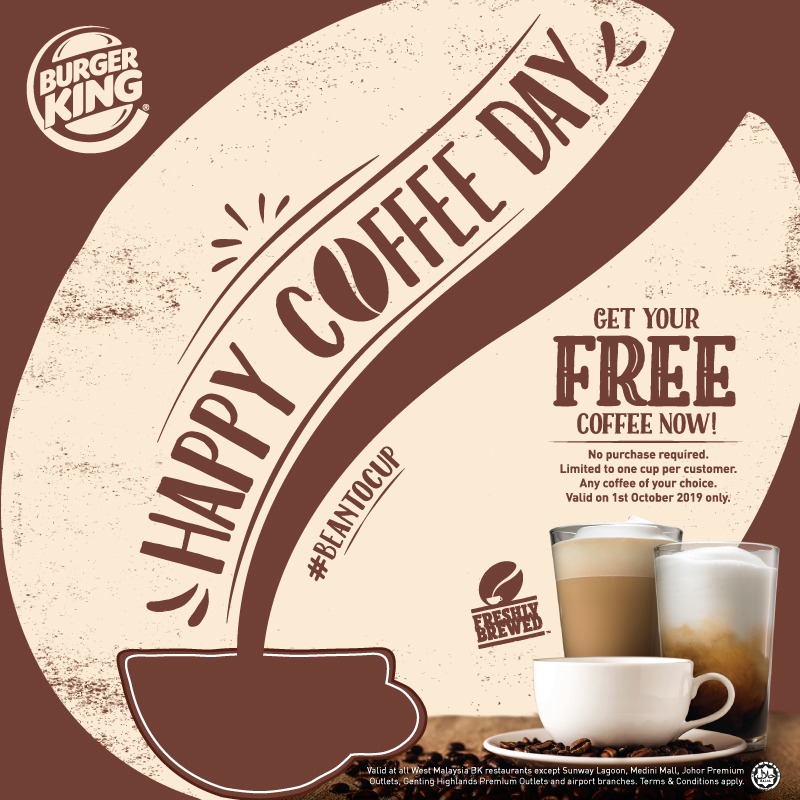 促销活动:Burger King 国际咖啡日优惠 – 免费1杯咖啡