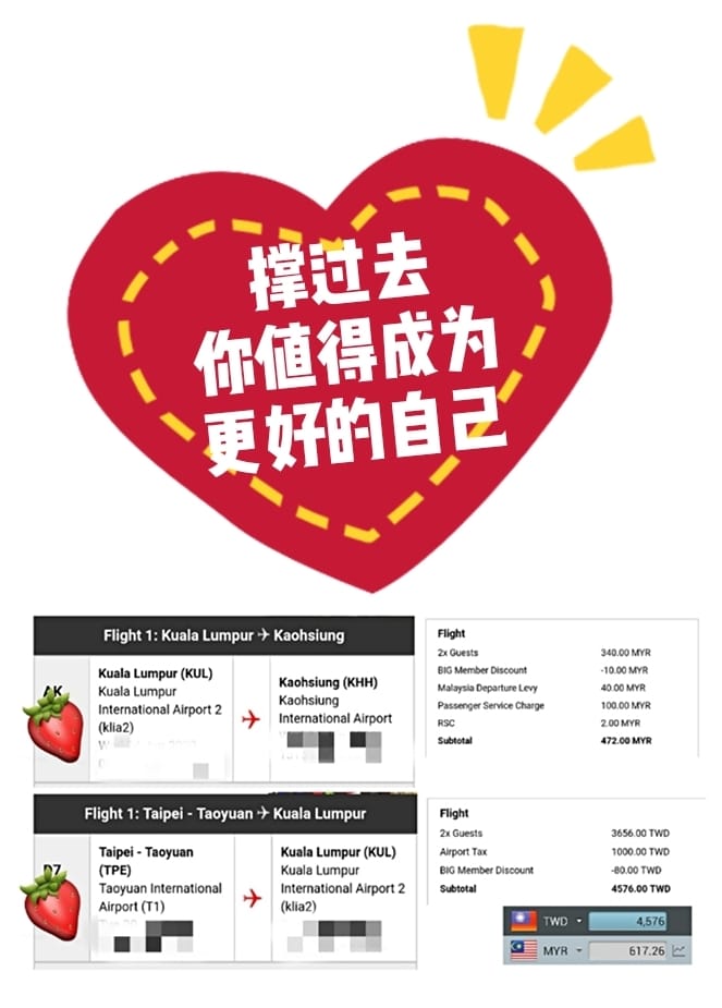 ✈小分享:存下了RM750,台湾来回机票RM544.63(纯机票收费)