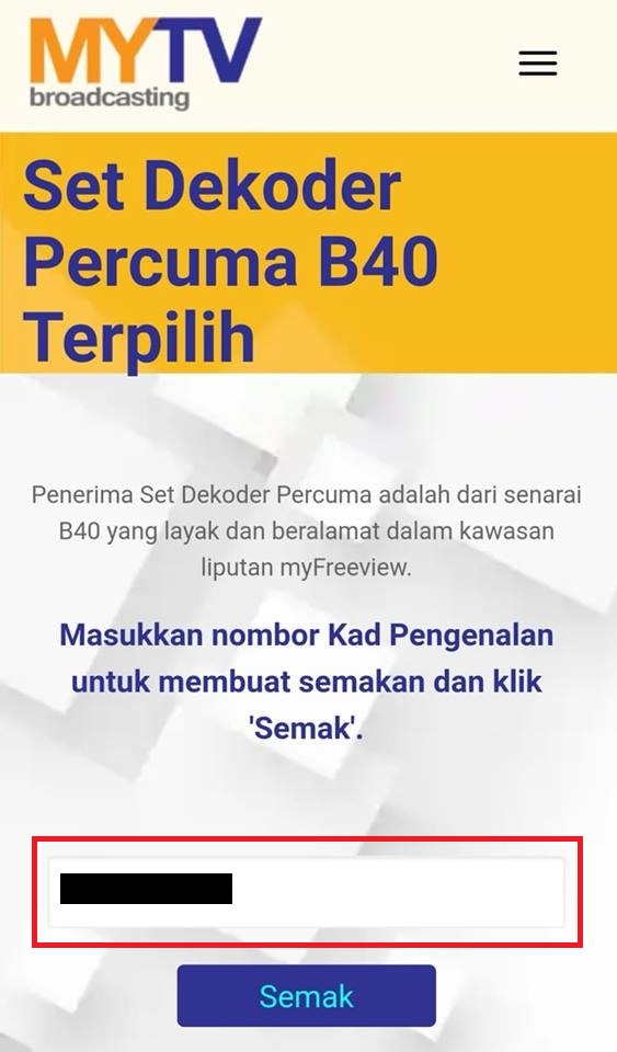 - 系统显示:「Tahniah! Anda adalah Penerima Set Dekoder Percuma」,是可获得免费数码电视解码器!