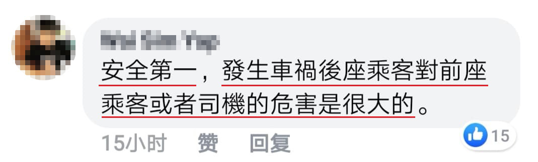 ▼ 网友们都支持须严厉执行后座乘客系上安全带的条规!因发生车祸时后座乘客对前座乘客所带来的危害!