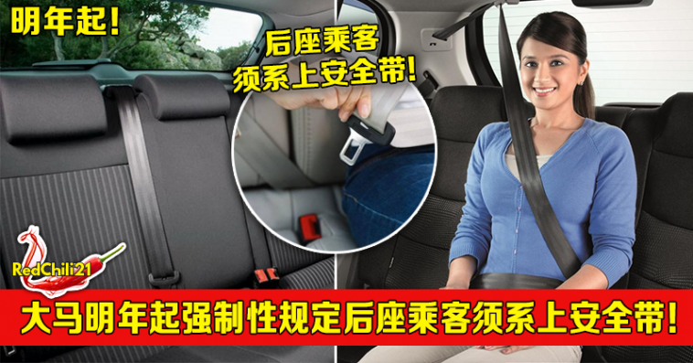 所有驾驶者及乘客,注意咯!明年1月起所有长途巴士及轿车的后座乘客将强制性系上安全带!