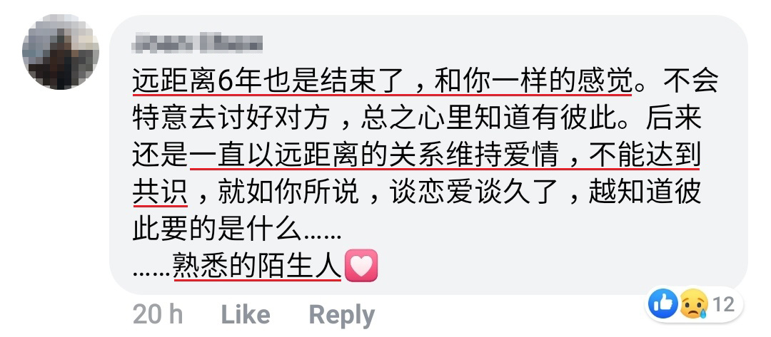 ▼ 曾经也是爱情长跑失败的网友们,留言分享自己的经历。
