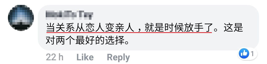 ▼ 网友认为:当恋人变成亲人,就应该分手了。