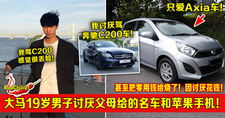 我今年刚上大学,年头爸爸就买了一辆奔驰C200给我,我很不开心!因为我喜欢的是Axia。Axia才是马来西亚之光💕。 所以我每次架C200去上课,都会感觉很丢脸,那感觉真的很不是滋味!每次看朋友架Axia我都很羡慕,我都在想为什么他们爸爸妈妈对他们都这么好。