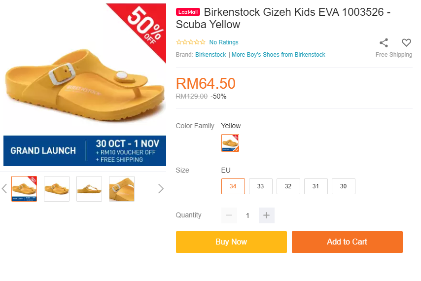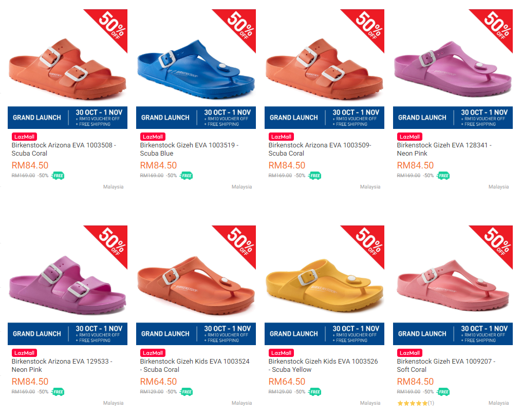 不管是大人还是小孩一律都有折扣高达50%大优惠哦!此外,Birkenstock官方还免费邮费及附送一张RM10的优惠券!