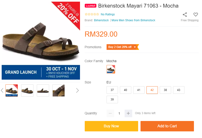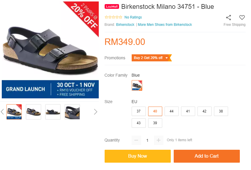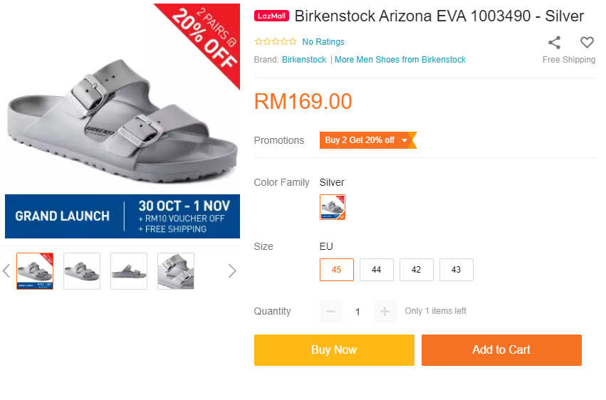 促销活动:Birkenstock与Lazada合作推出大优惠!折扣高达50%!
