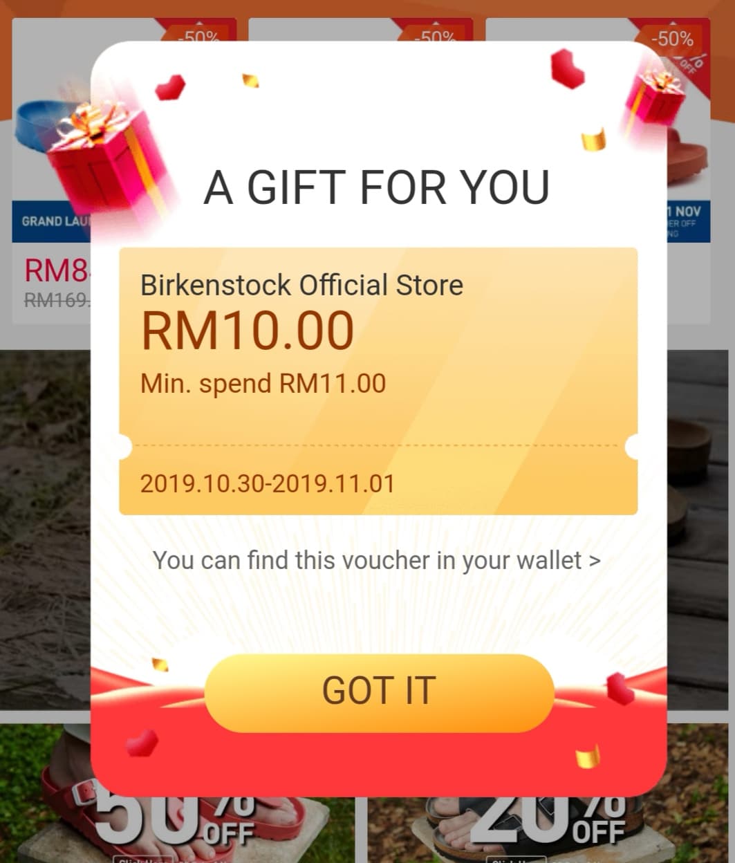 - 获得免费RM10优惠劵需Follow Binkenstock的官网