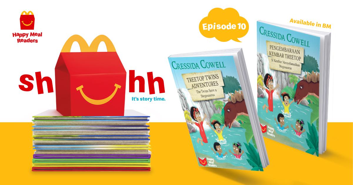 即日起,Happy Meal 不但送出以上的各款玩具,还有【Treetop Twins Adventures】第10集(Episode 10)的故事书呢!故事书有分成英语版以及国语版,是不是相当贴心的咧?!