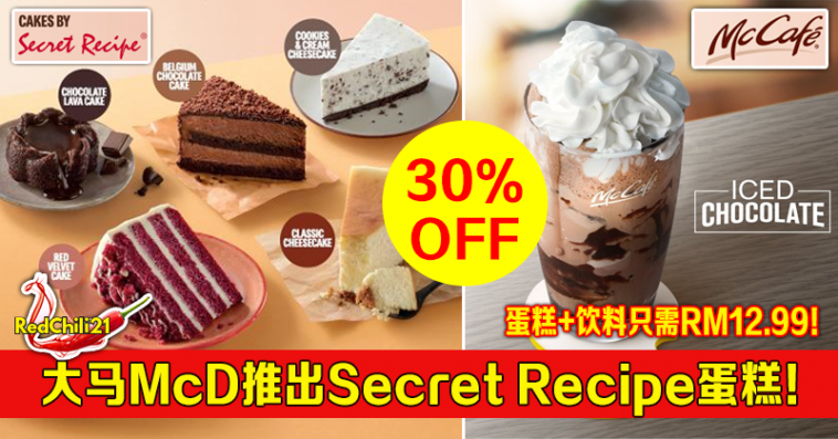 好消息!在麦当劳(McDonald’s)除了可以吃快餐和喝咖啡以外,即日起还可以吃到 Secret Recipe 的蛋糕啦~