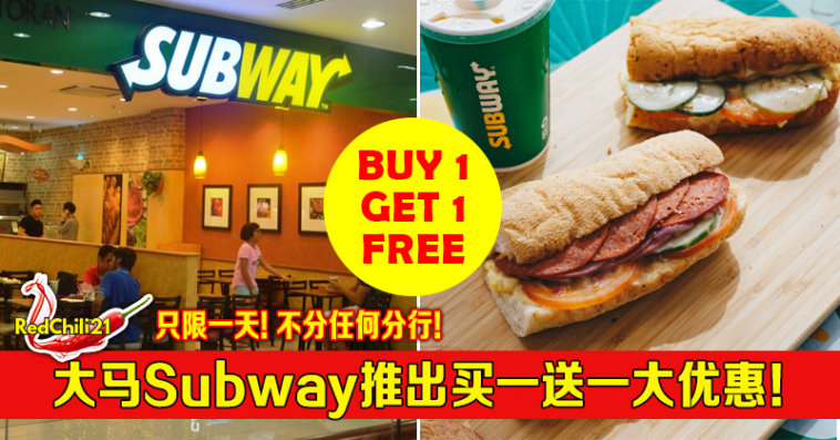 吃货们,好消息咯!大马 Subway 即将推出买一送一大优惠!只限一天哦!