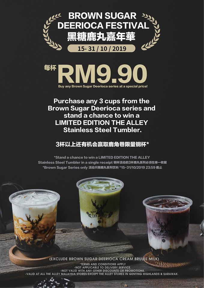 鹿迷们~这里有一项好康要送个给大家!大马The Alley为了回馈给鹿迷们即日起推行「黑糖鹿丸嘉年华」!同时还推出「鹿丸系列」中的任何一款饮料只需RM9.90!