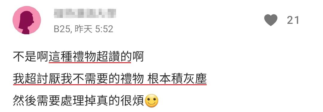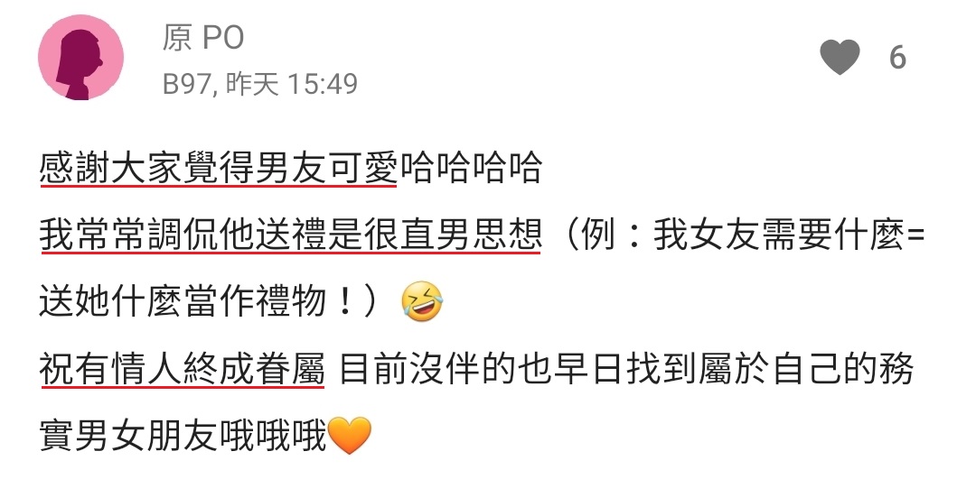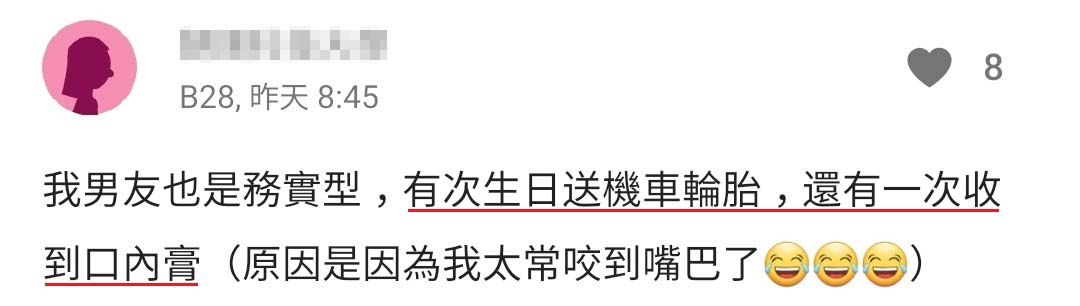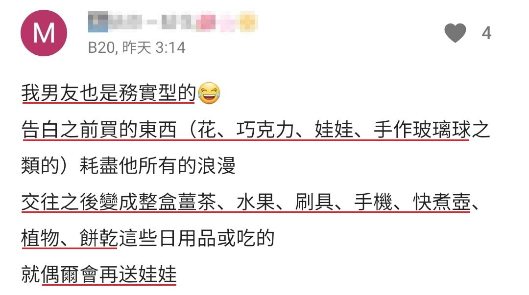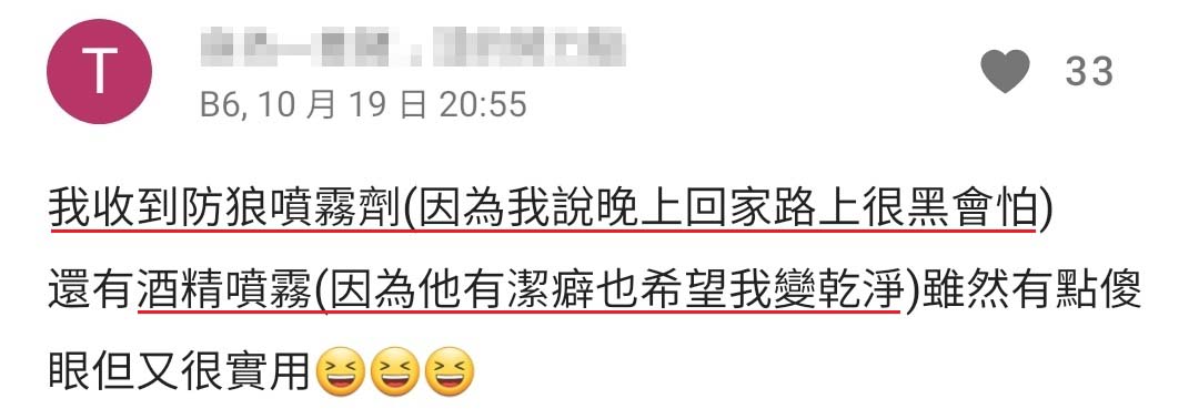 他一开始交往前就和我说他送礼很务实,我也不介意反而时间久了觉得蛮搞笑的,很期待他每次可以变出什么礼物😂😂