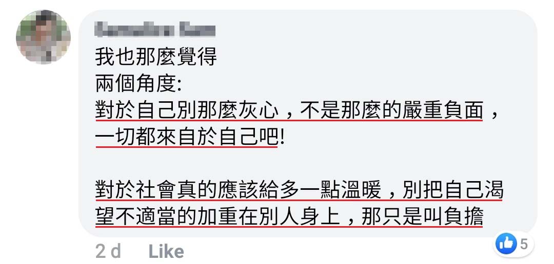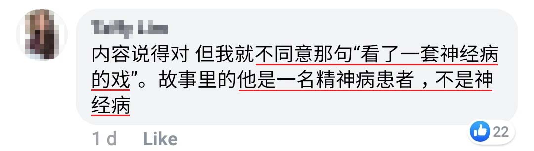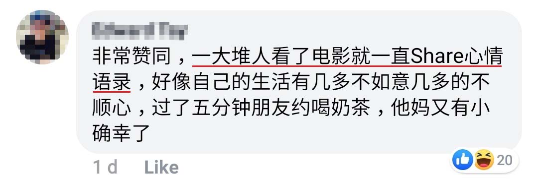 原PO表示:这部电影是要提醒我们,对于有困难的人,我们应该给予多一点的关怀。不是放大自己的不幸,然后对人生更加悲观。