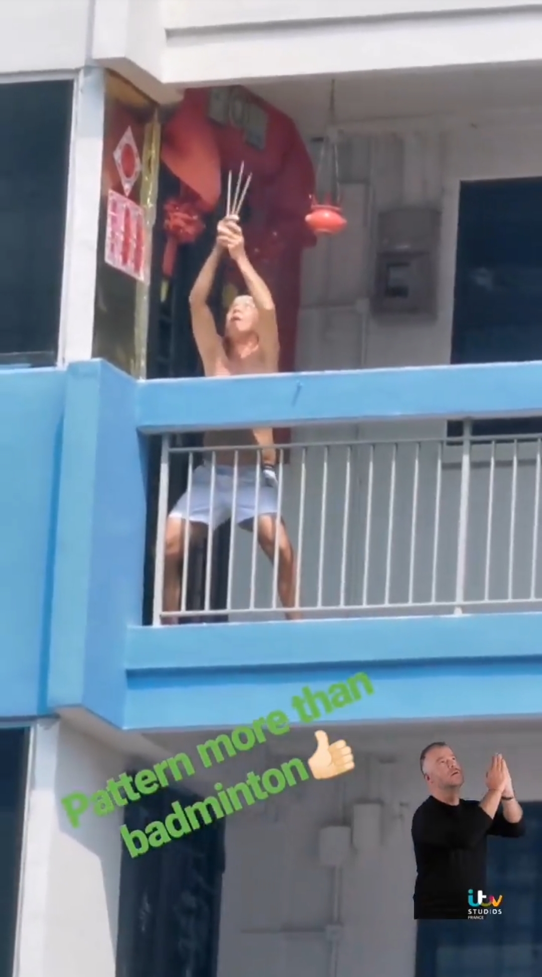 ▼ 拜一个方向而已,可能不够诚意。Uncle 再换个方向,同个姿势的拜拜!原PO还在视频的下方配上一个拜拜的动图以及一句话:「Pattern more than badminton!」