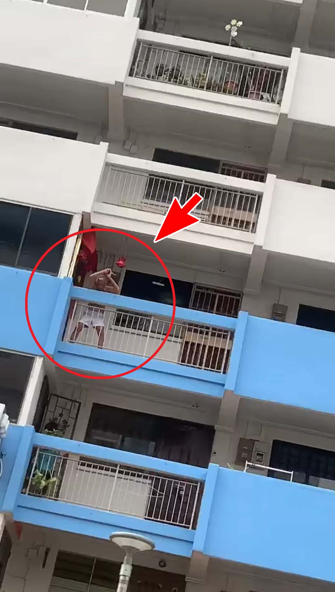 原PO把一段视频分享到面子书,视频里,一位住在组屋里的 Uncle ,光着上半身,站在屋外对着天空非常“认真”地在拜拜!