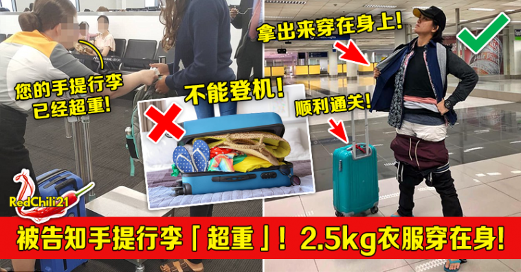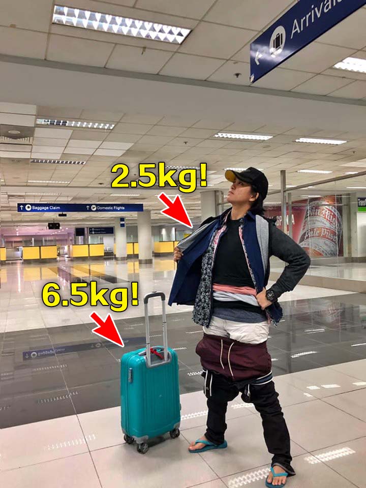把2.5公斤的衣服穿在身上,让手提行李从原本的超重变成“低于标准”,原PO真是太强了!你要不要也接受这项挑战啊?!(哈哈哈哈哈!