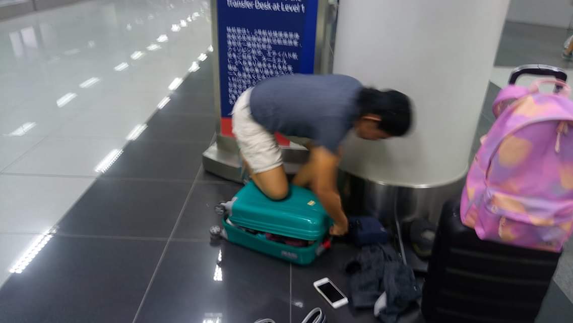 ▼ 原PO立刻换上短袖衣服和短裤,把2.5公斤的衣物全塞回去行李箱里!